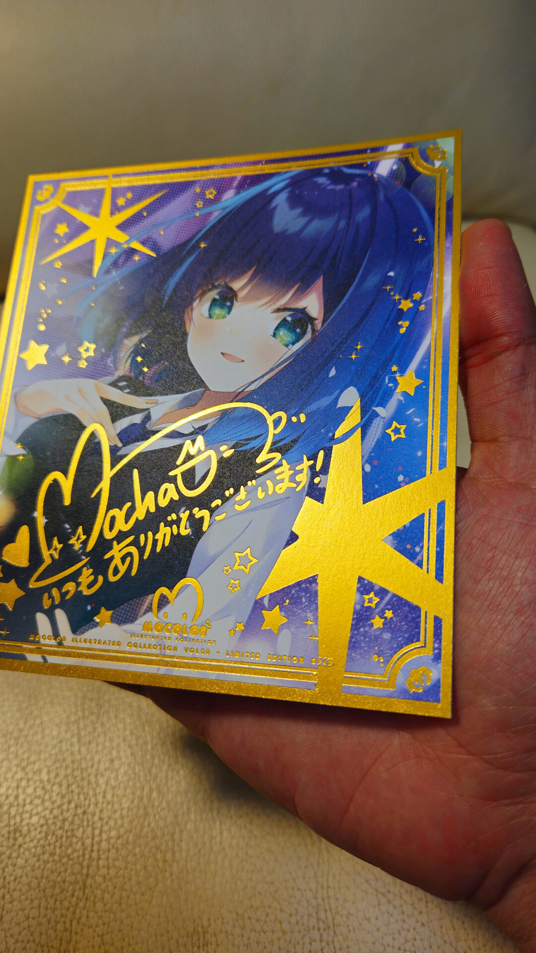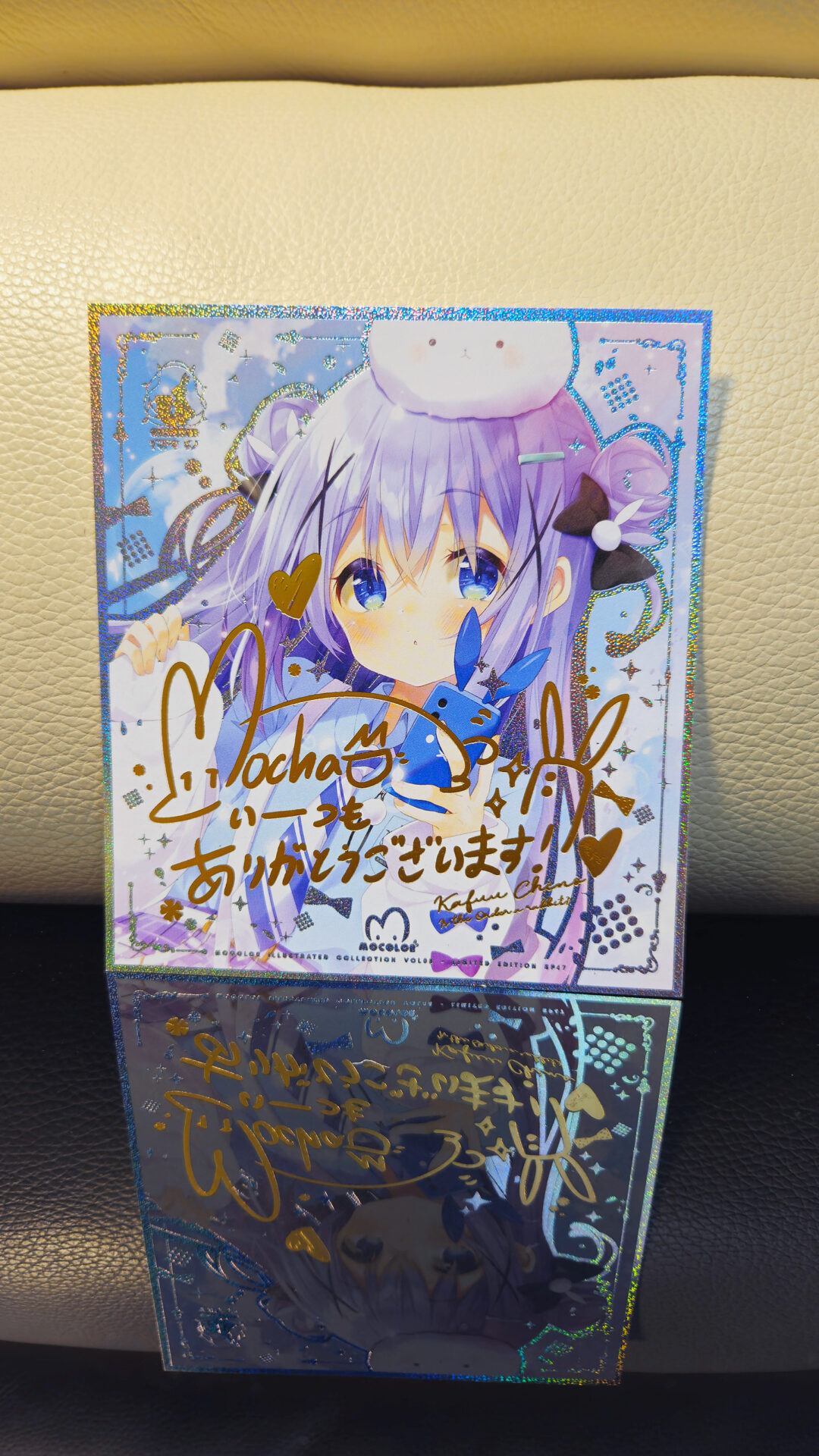 全日本製作& Premium Color 五色印刷複制色紙!全部色紙4面加上金邊效果也印上了MOCHA的簽名,包裝外袋也有燙金喔!