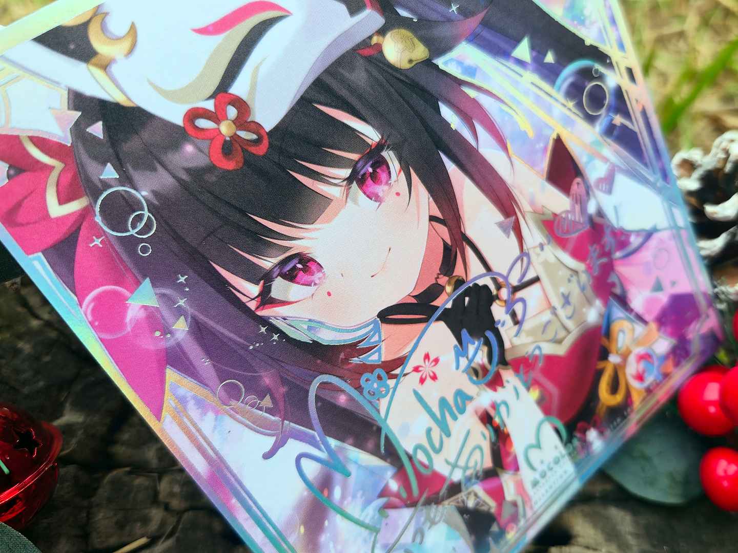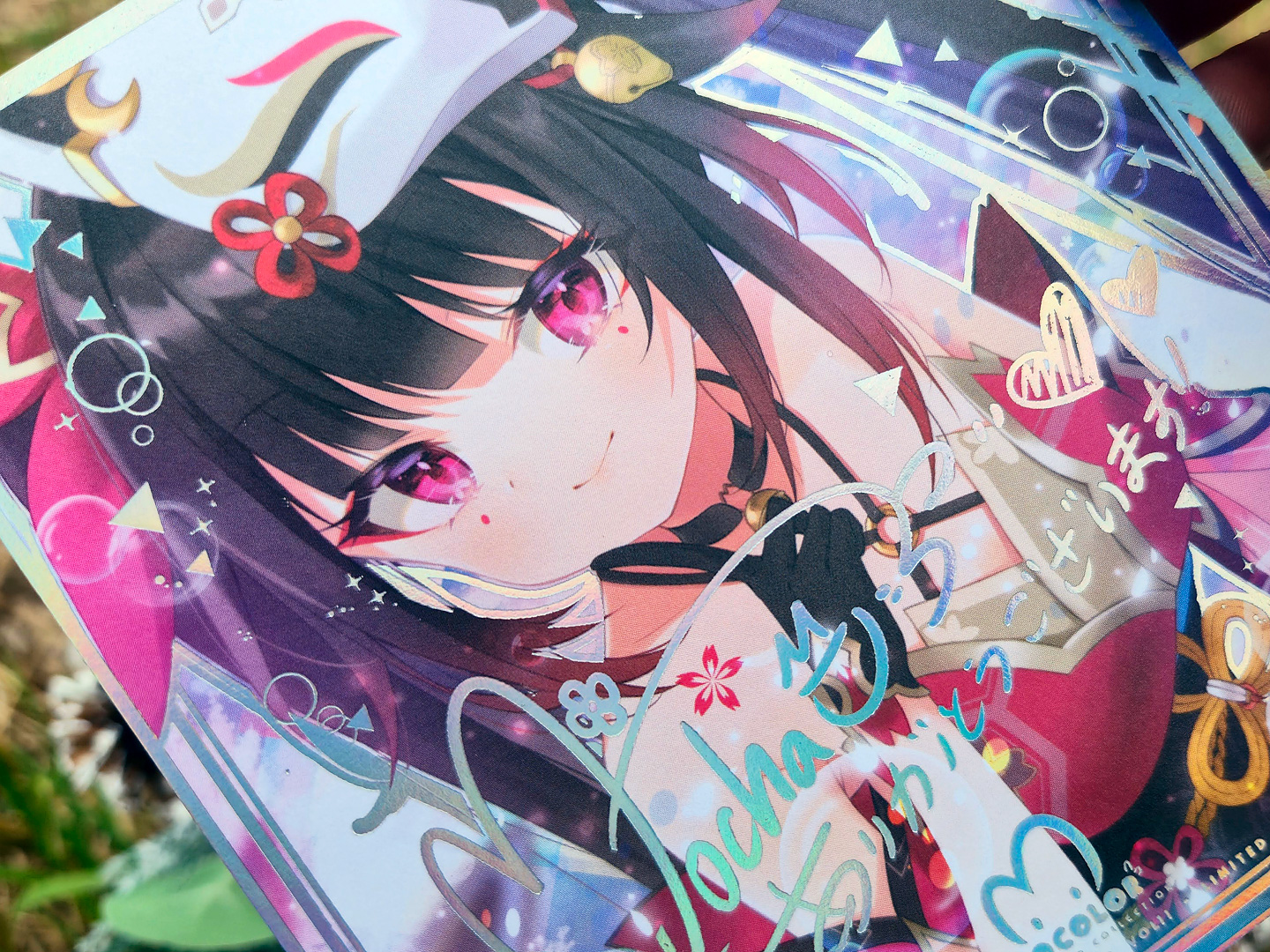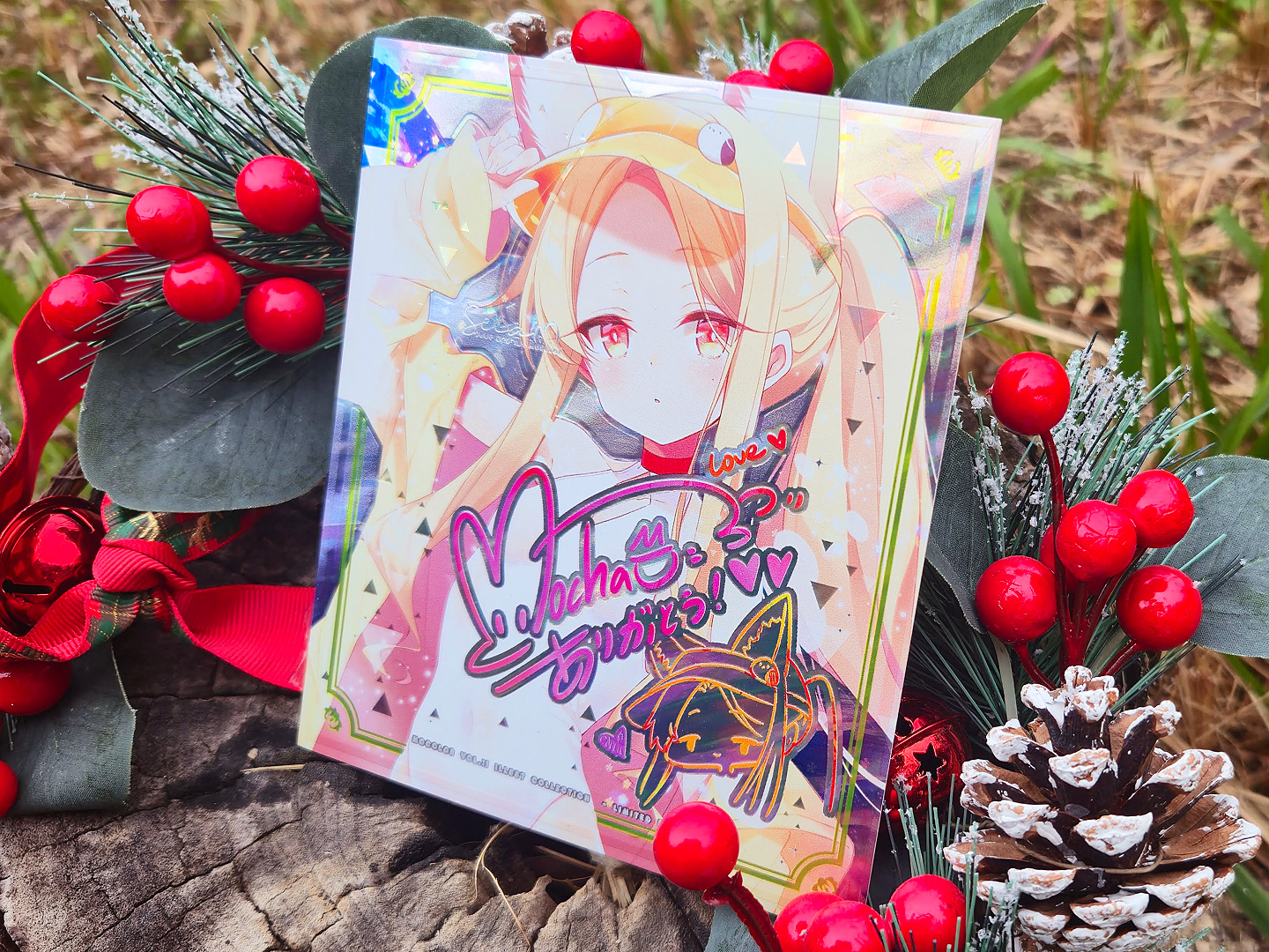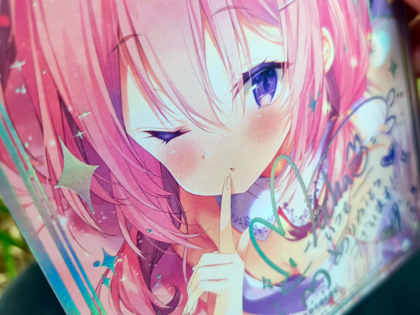 這次MO11的特典卡依然是用上幻彩鐳射UV工藝,正常角度看過去,反光效果會比一般燙金更亮、更搶眼一點~!!配合圖面輕輕轉動視角時,會跑出那種細碎的光澤變化,看起來超有層次感的(心) 這次尤其智乃及流螢的UR還特別加強了局部凹凸燙壓,希望不只是「遠看很閃」,而是靠近、摸一摸的時候,也能感受到那種溫和但很明顯的手感差異啊~不過照片未必拍得很好,所以還是最推薦大家到活動現場親眼、親手感受一下實物的魅力喔!~