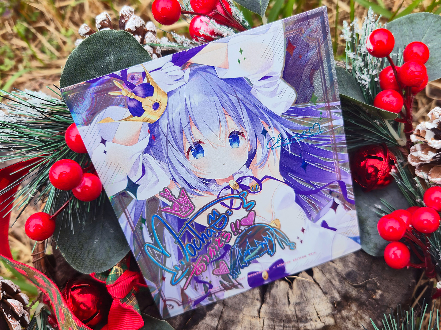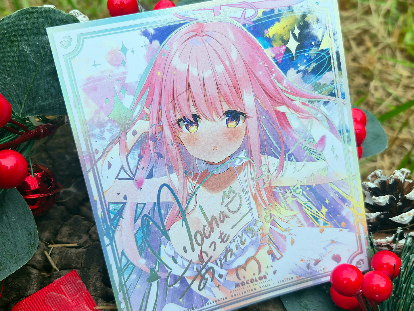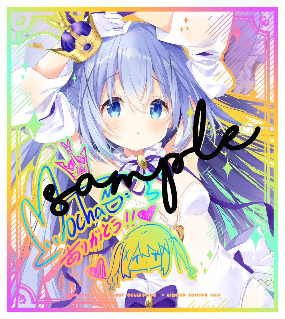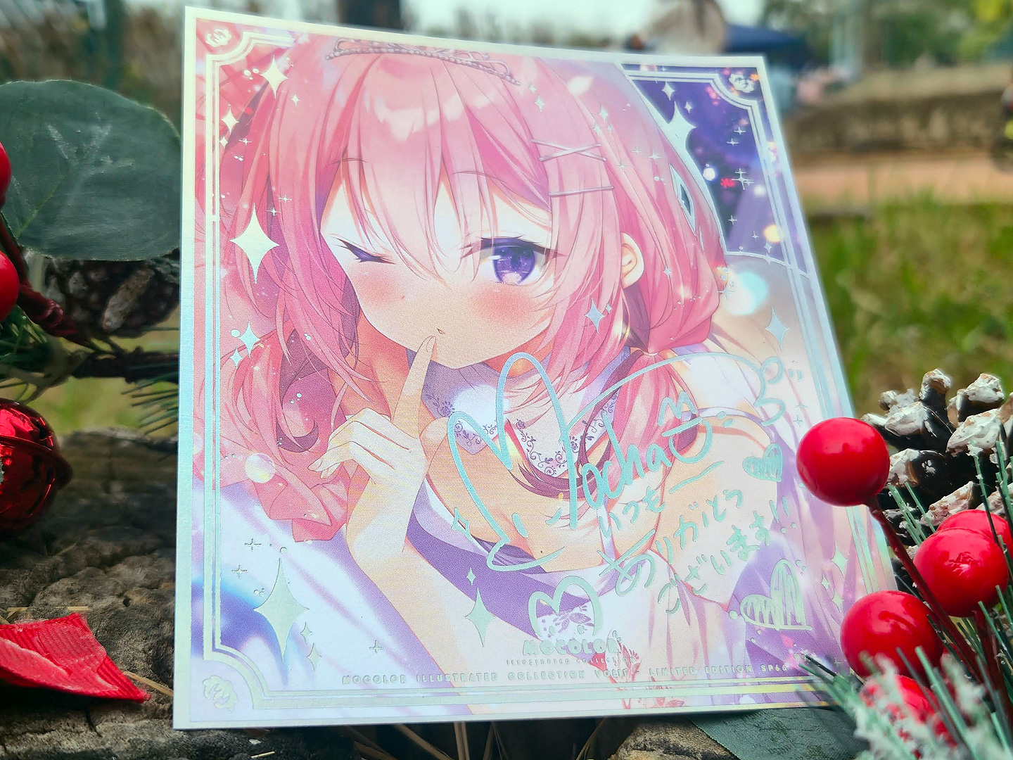 還有還有,同樣地,這次在色紙部分也偷偷塞了一個小巧思(?)——在日本色紙裡,新增了MOCHA直簽的特別版複製色紙(智乃款)!款式跟普通版的不同(其實就是特別版的智乃啦~),數量大約是普通色紙的五份之一左右,希望大家有抽到時可以會想尖叫一下喔www