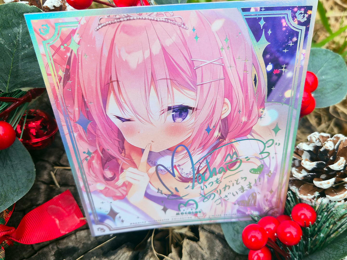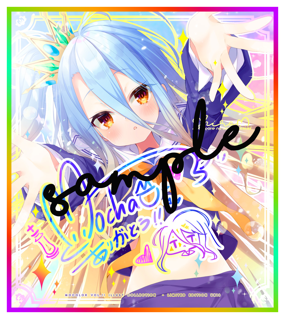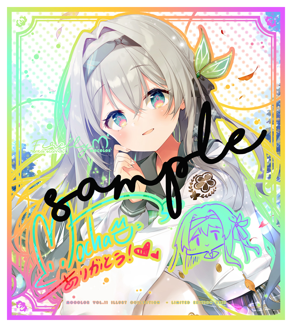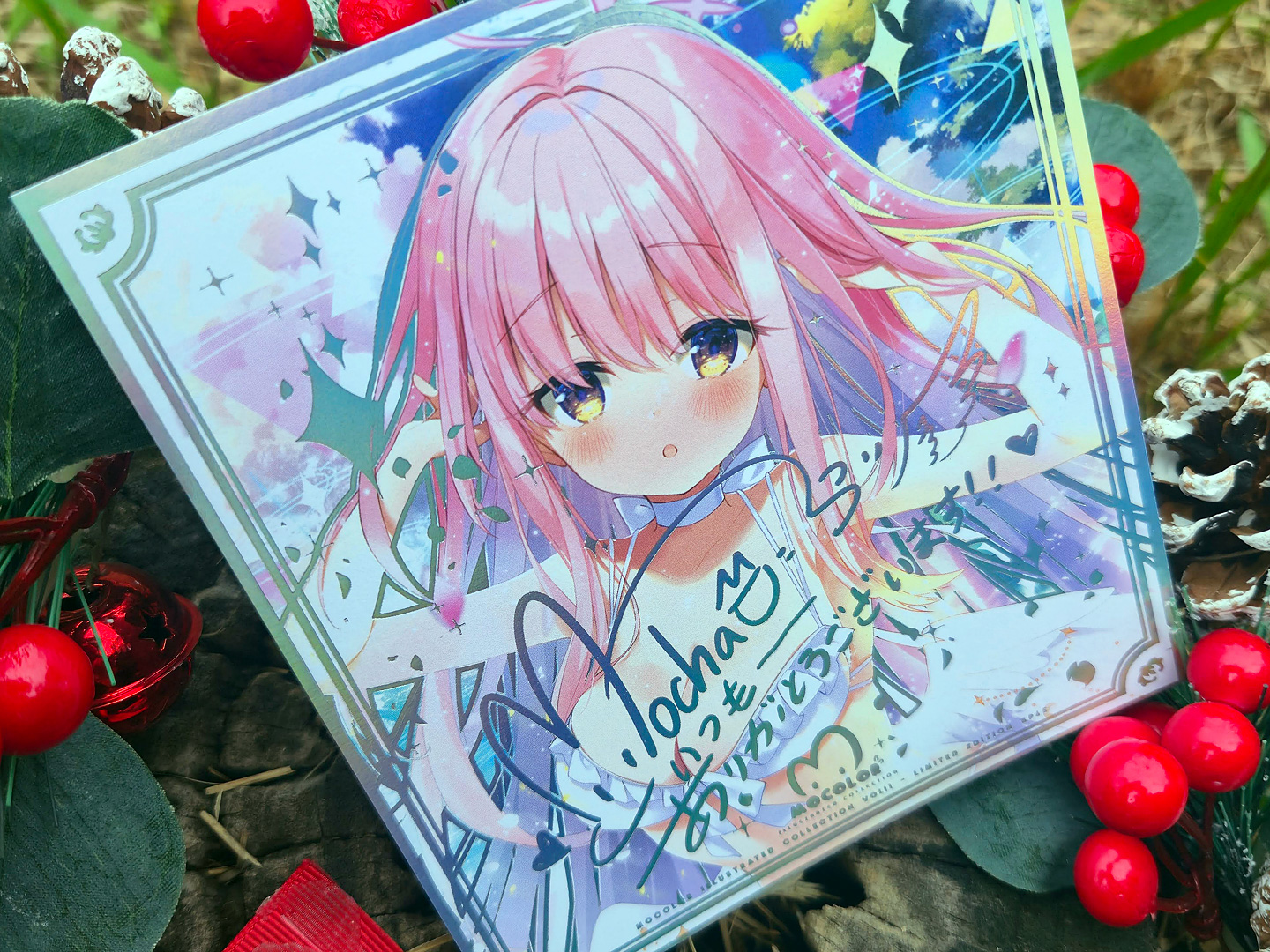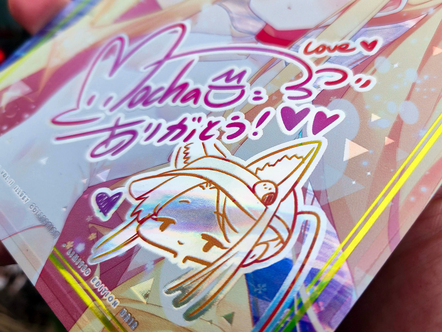 還有還有,同樣地,這次在色紙部分也偷偷塞了一個小巧思(?)——在日本色紙裡,新增了MOCHA直簽的特別版複製色紙(智乃款)!款式跟普通版的不同(其實就是特別版的智乃啦~),數量大約是普通色紙的五份之一左右,希望大家有抽到時可以會想尖叫一下喔www