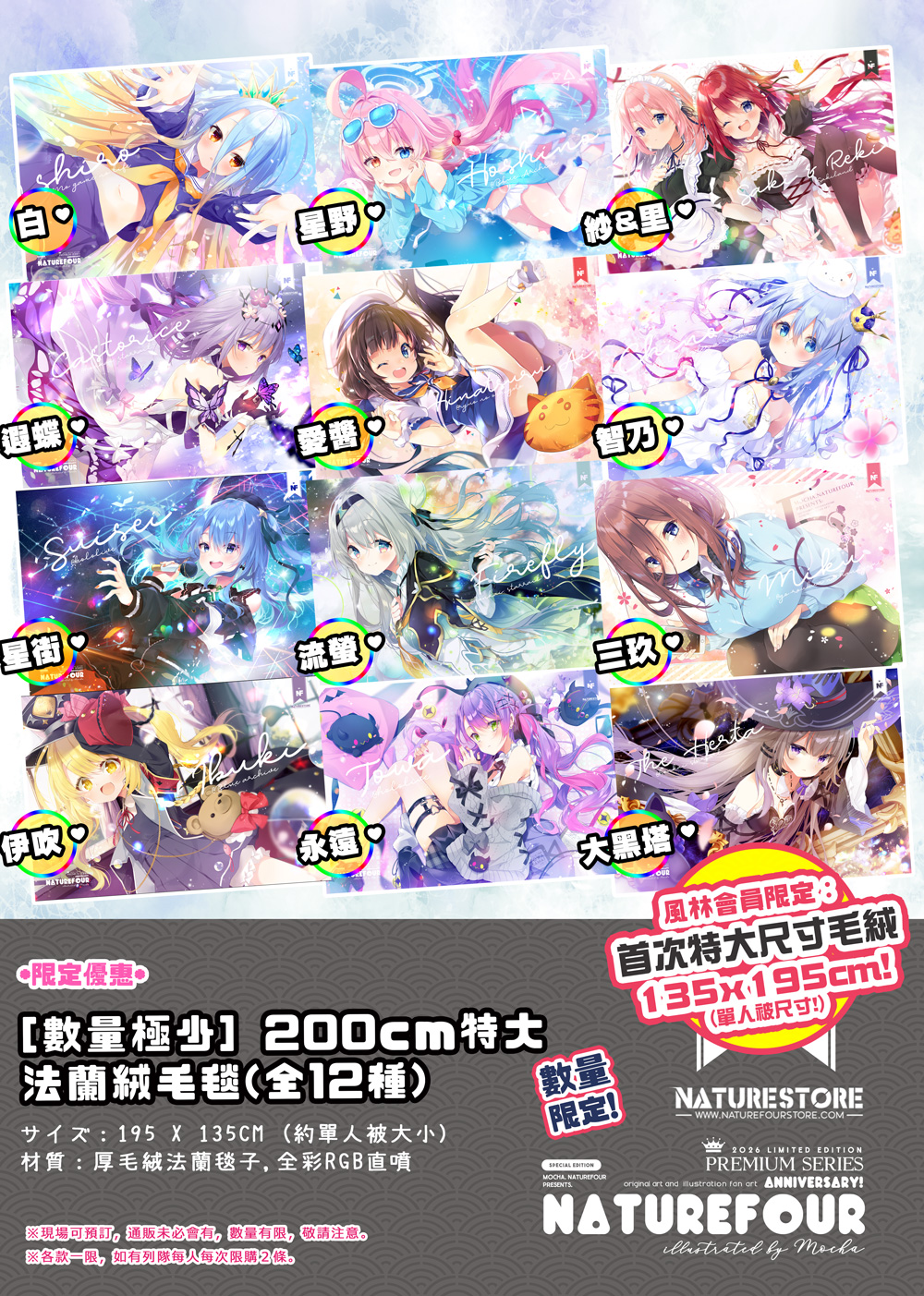 毛毯跟月曆一樣,一次過準備了12款,每款不足10條,因為也是第一次弄會員限定的超新品,作為感謝大家,所以價格都是超優惠的定位,跟其他物品不能直接比較喔~!記得帶備歷代任何一張風林信用卡來選購你最喜愛的一款特大毛毯啦!