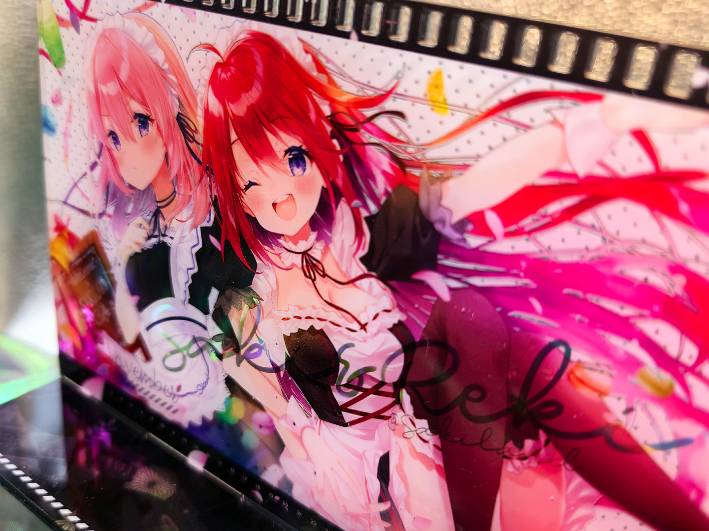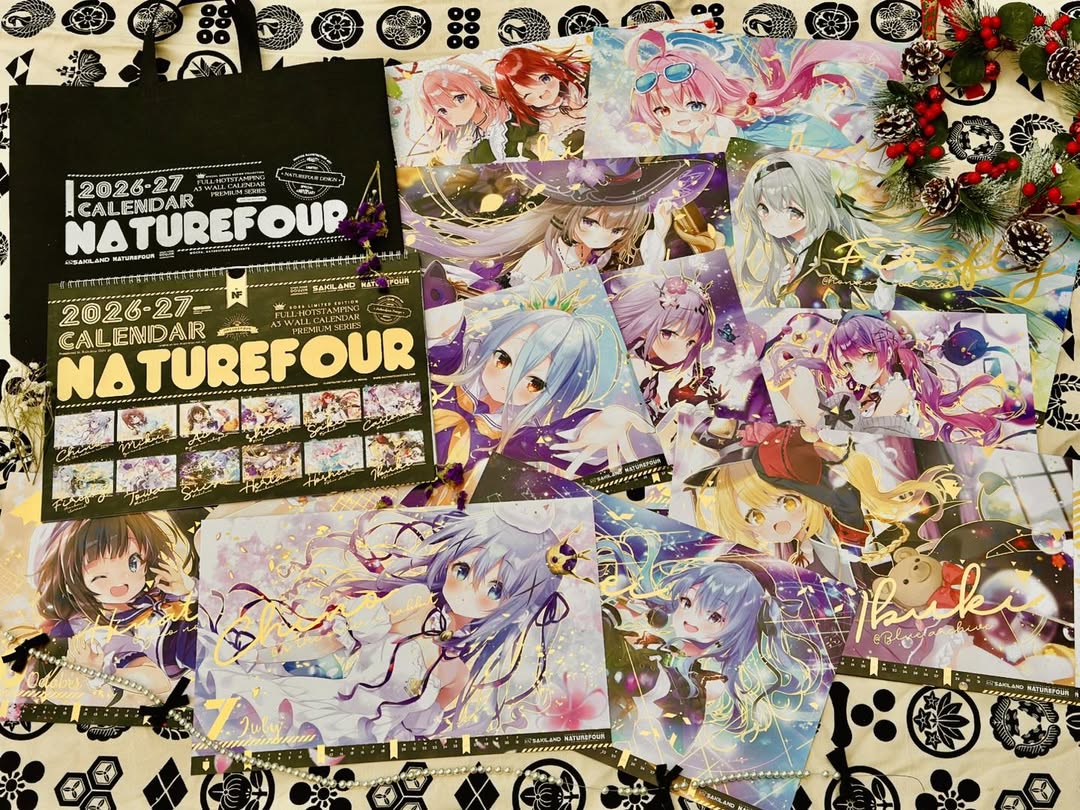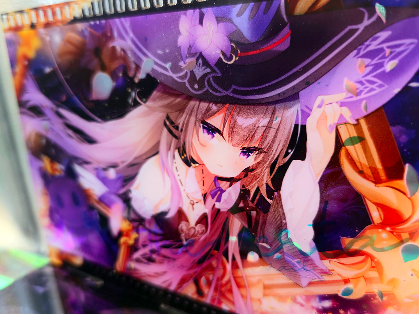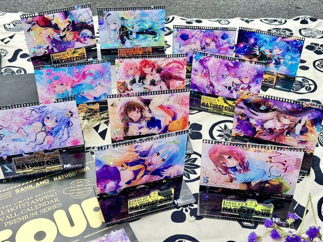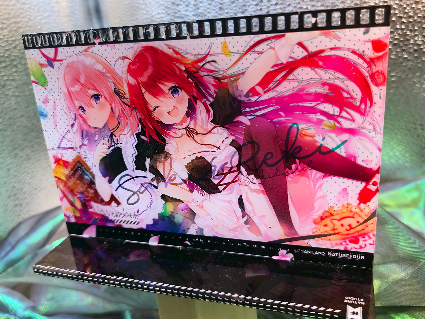 A3燙金月曆套組中的特典:小型壓克力月曆款小立牌!~這次也有做了幻彩的效果,而幻彩的部份,就剛好是燙金的部份,所以在壓克上看回圖片,透過光線又可以折視另一個不同的效果出來喔~