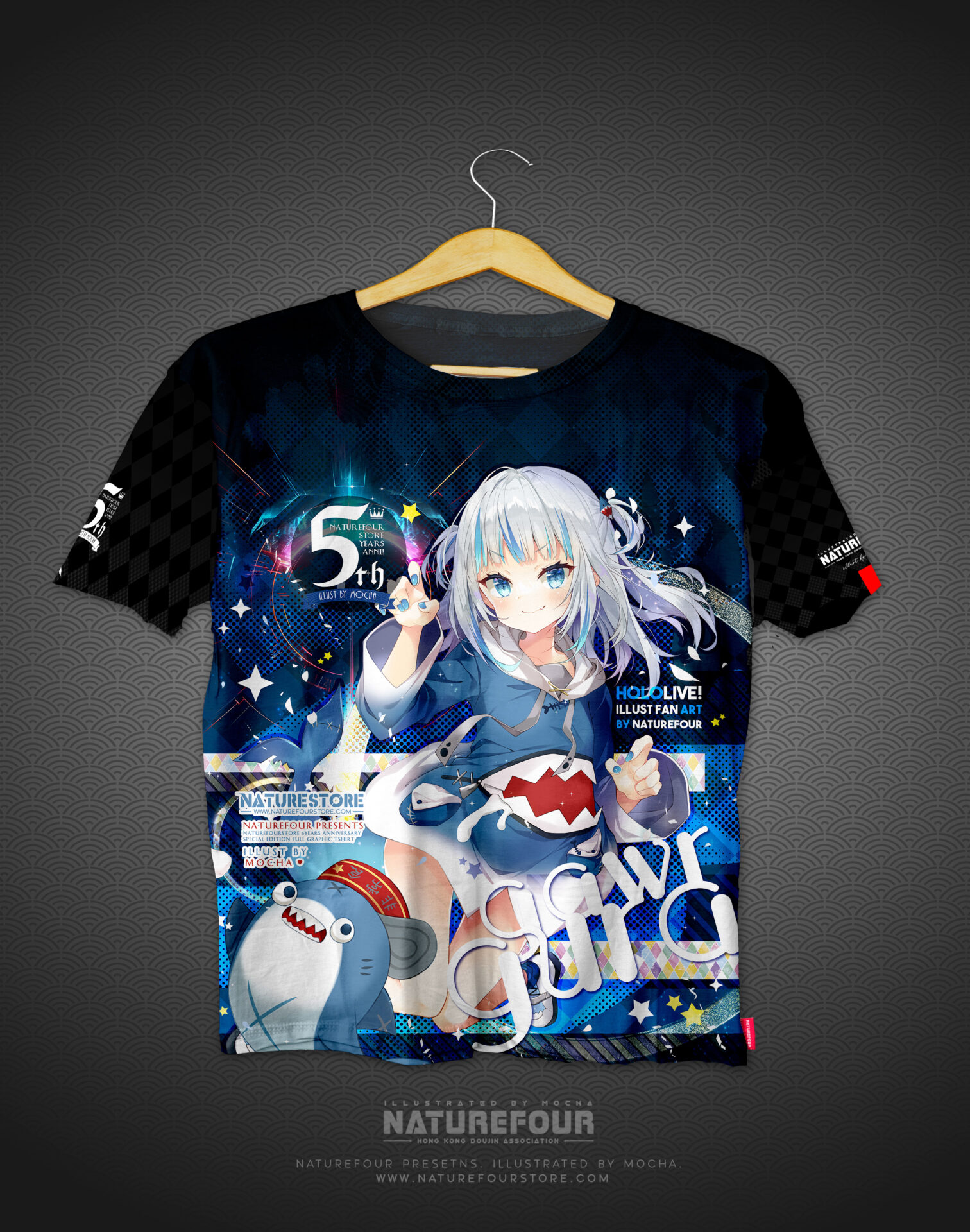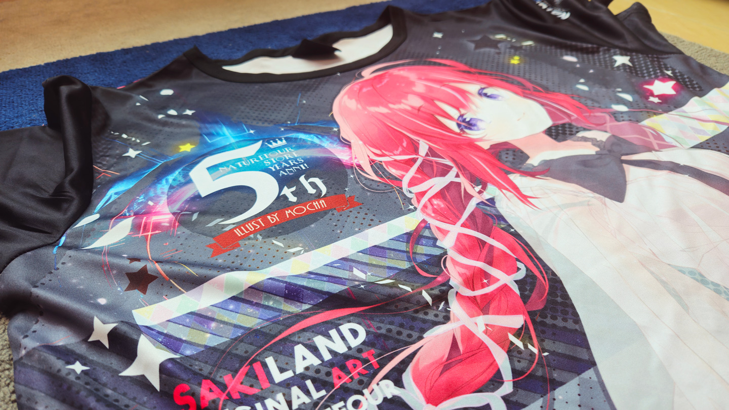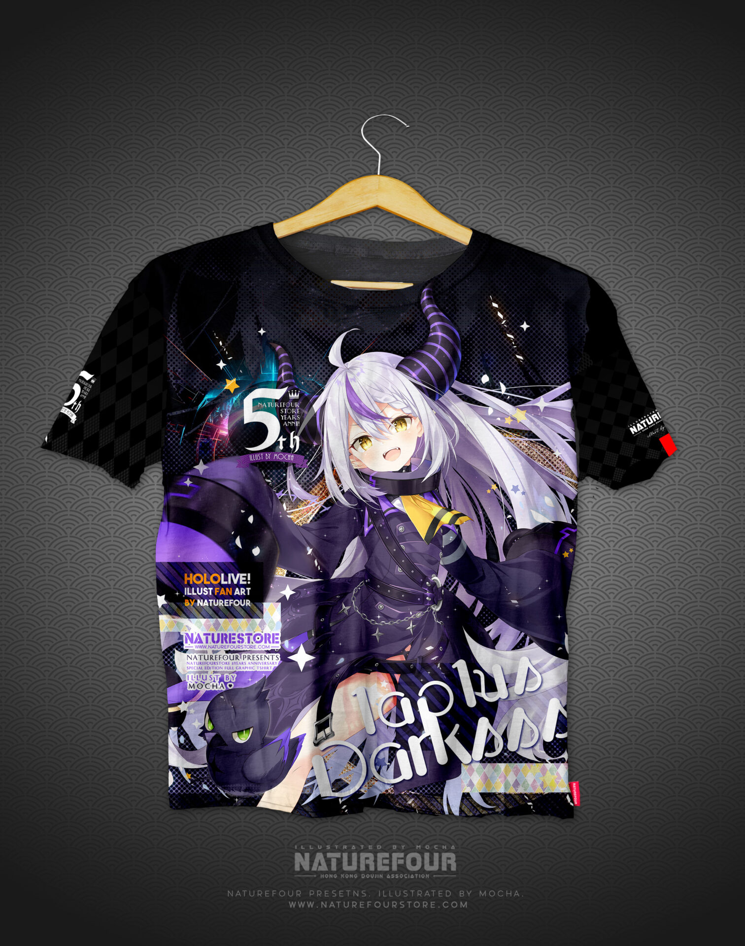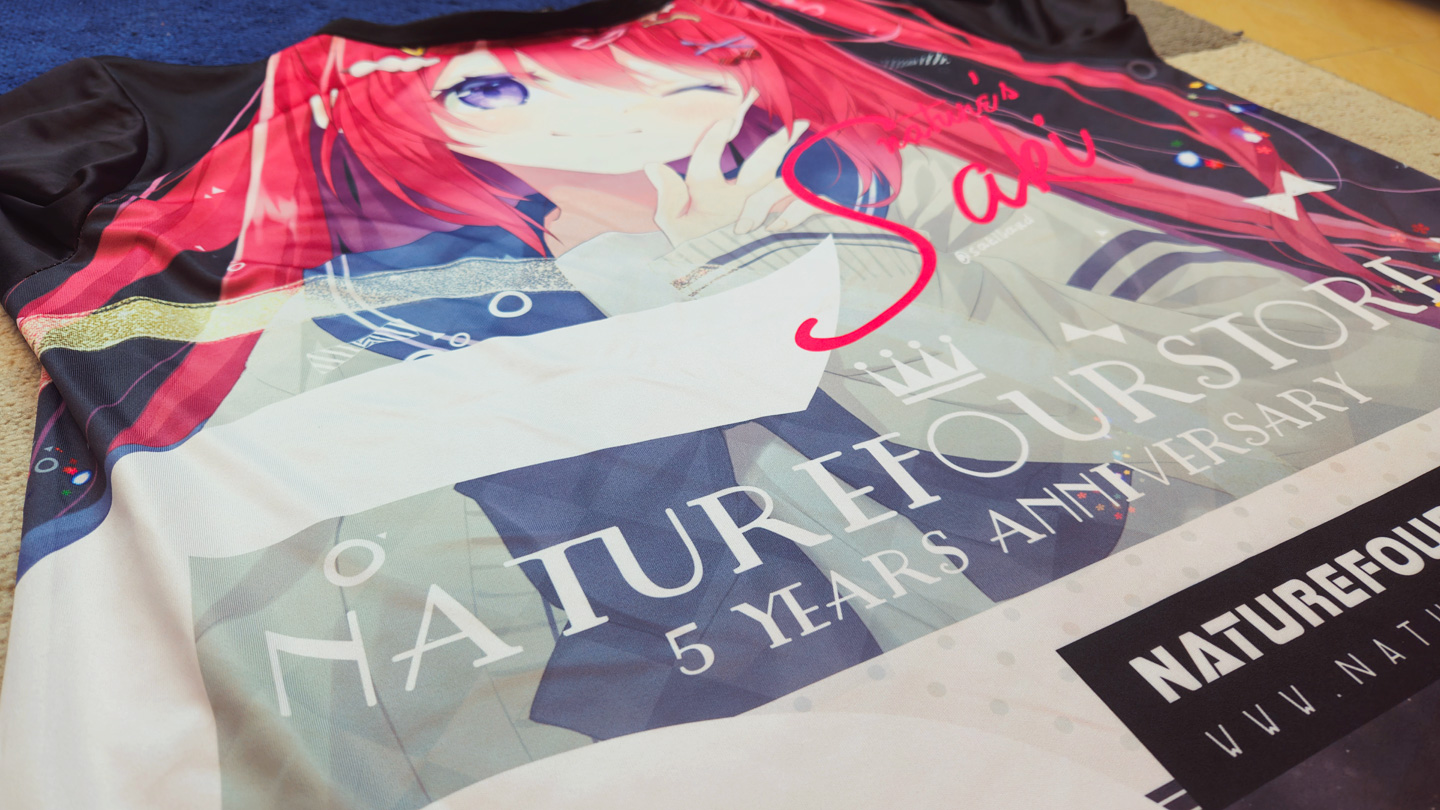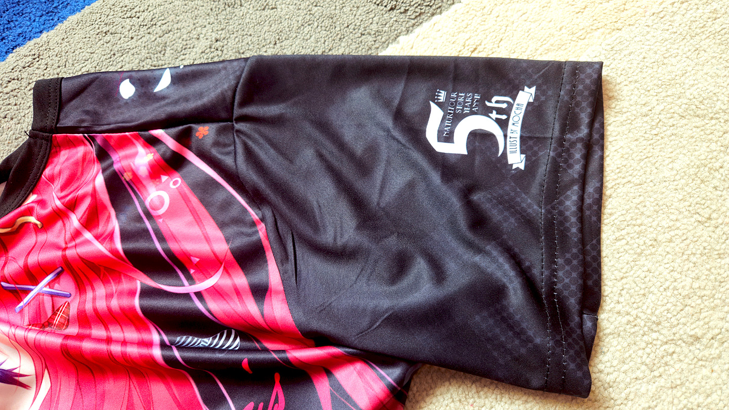 這次的全彩衣服除了全版覆印刷之外正面及背面,而且手袖兩邊也不是亂序是定位的圖案也都全部印刷出來呢!! 除此之外,因為是週年紀念的衣服想再做好一些,所以在衣服的手袖邊及衣邊也釘上了刺繡的標籤之餘,還有在衣領中也印有5週年衣服的Logo及標示喔!!