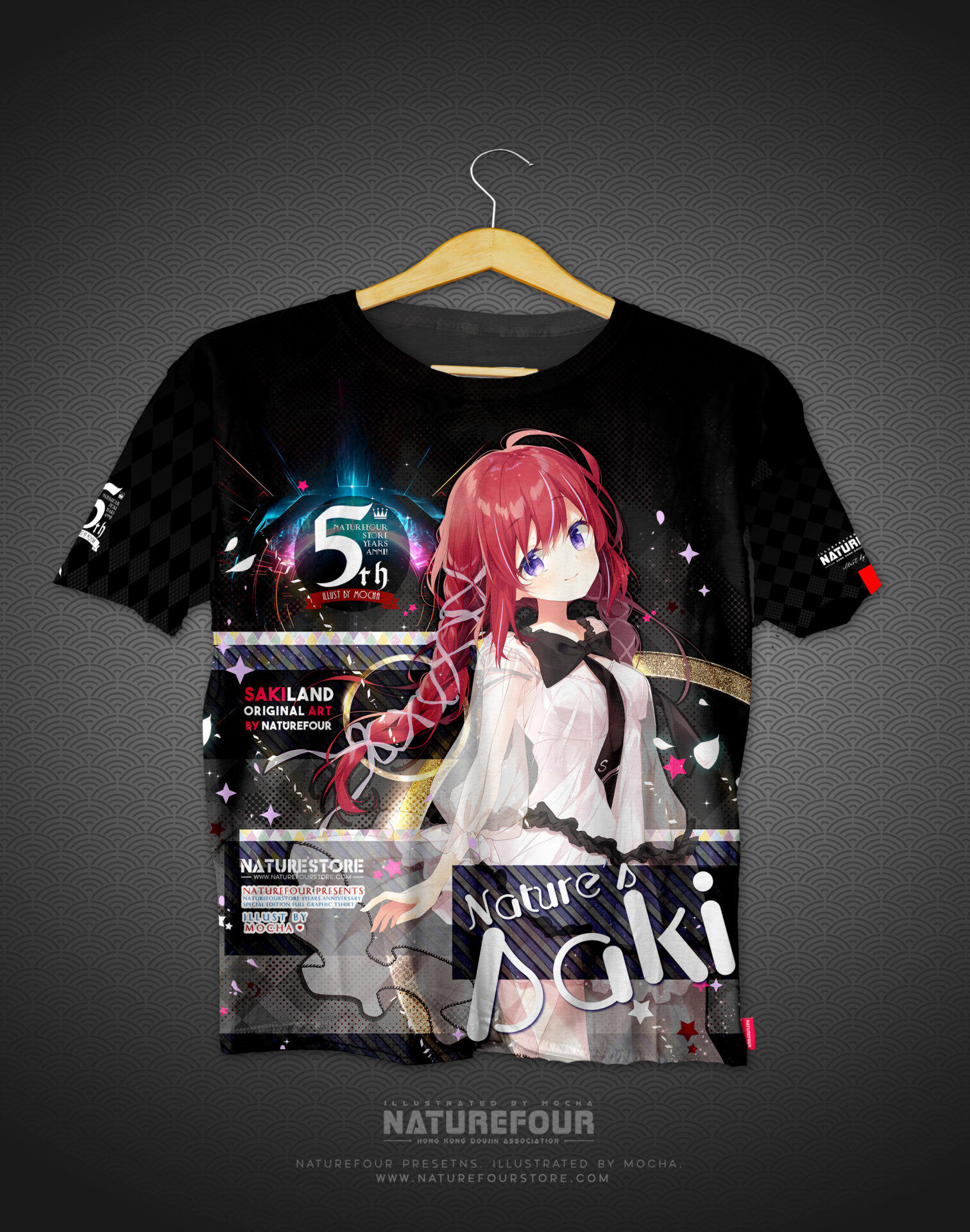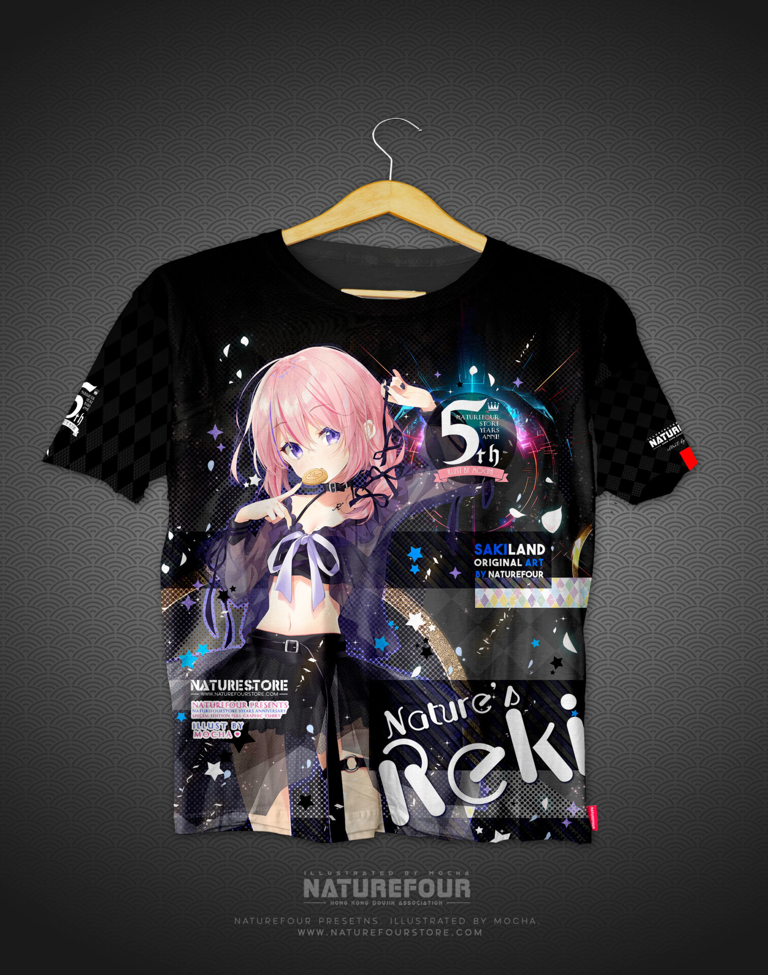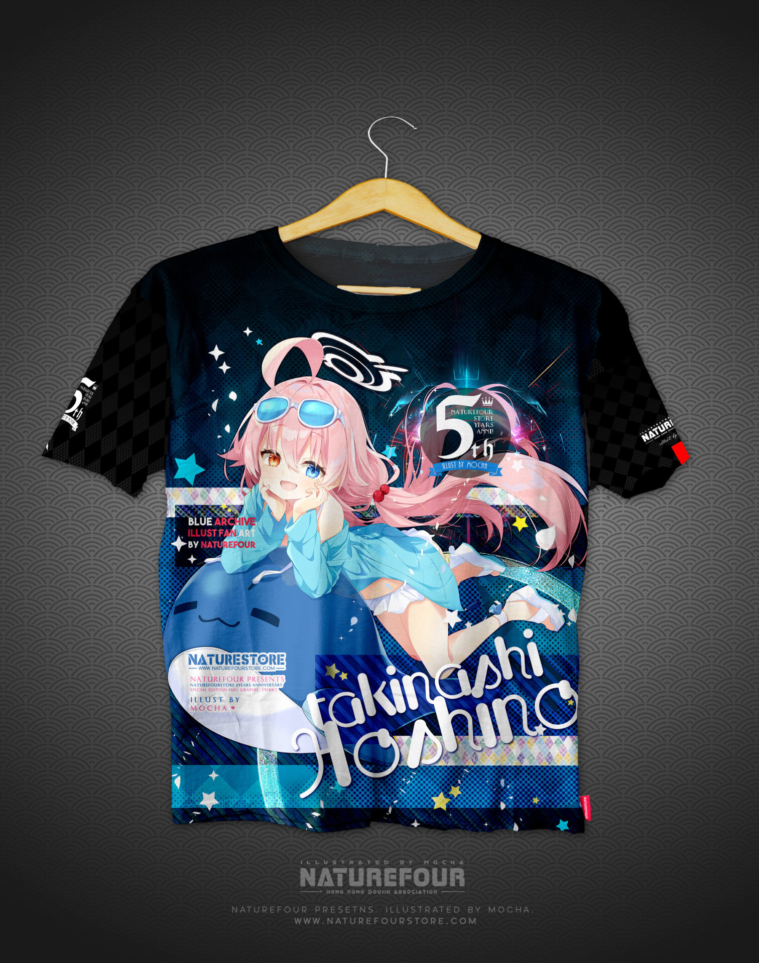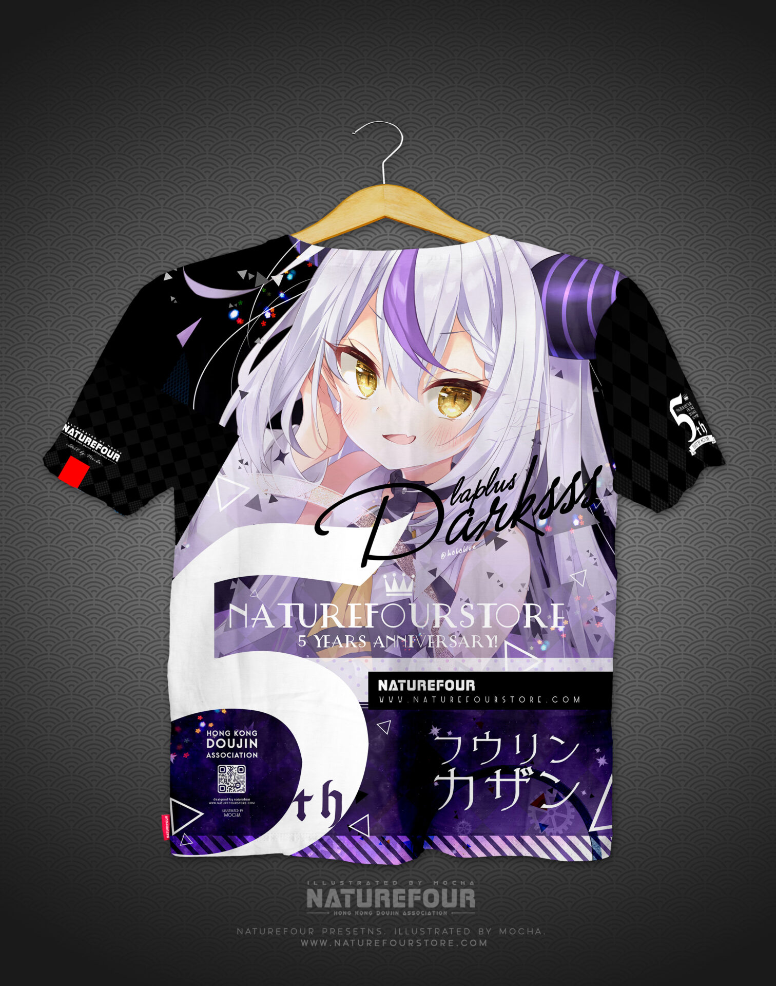 這次的全彩衣服除了全版覆印刷之外正面及背面,而且手袖兩邊也不是亂序是定位的圖案也都全部印刷出來呢!! 除此之外,因為是週年紀念的衣服想再做好一些,所以在衣服的手袖邊及衣邊也釘上了刺繡的標籤之餘,還有在衣領中也印有5週年衣服的Logo及標示喔!!