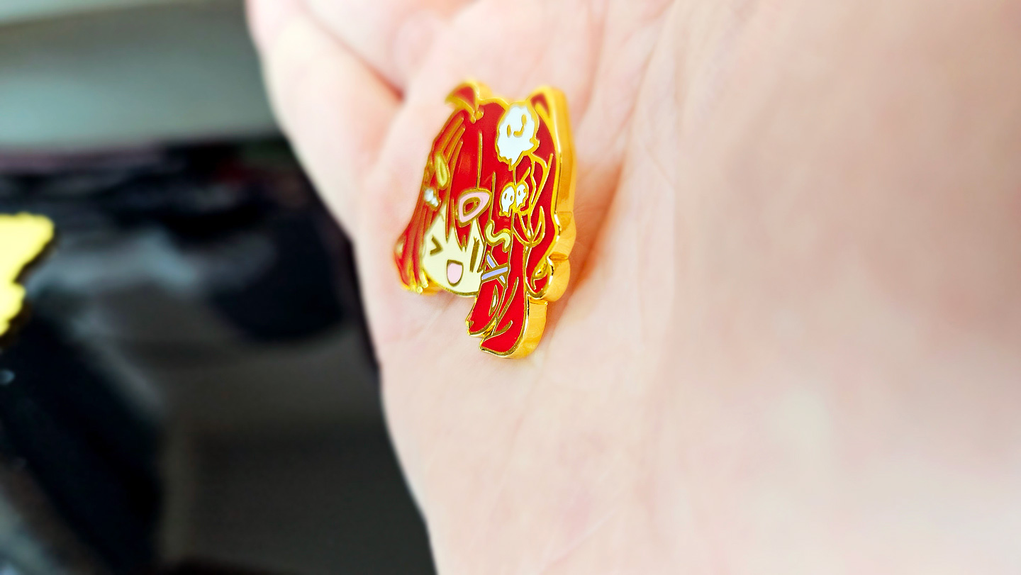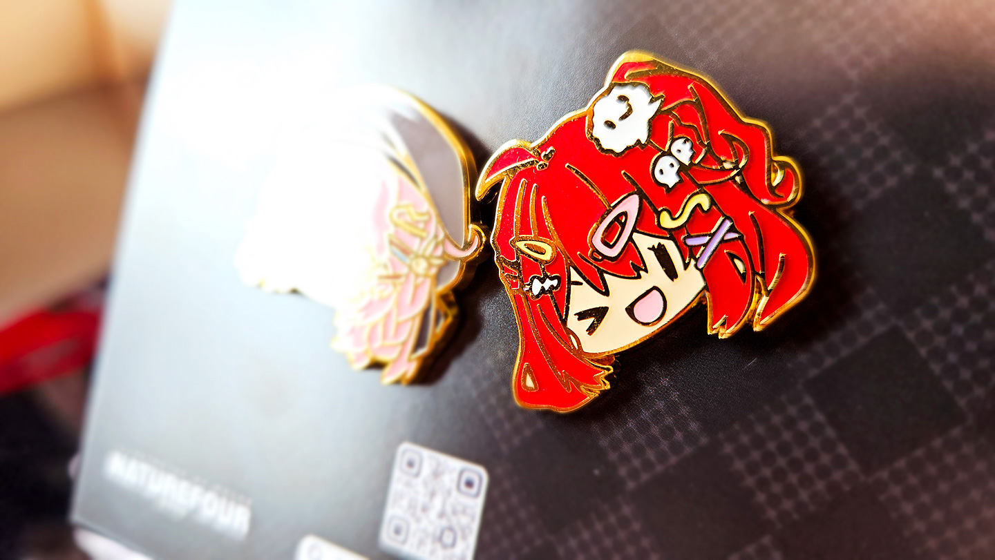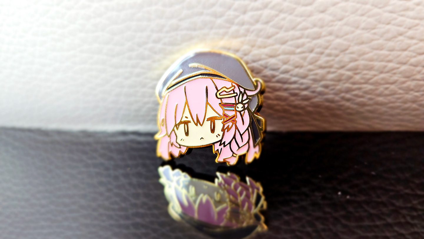 這次的金屬徽章比之前的更漂亮,仿琺瑯的金屬徽章在燈光折射下顏色會更平均,所以圖案看起來會更光滑喔!!