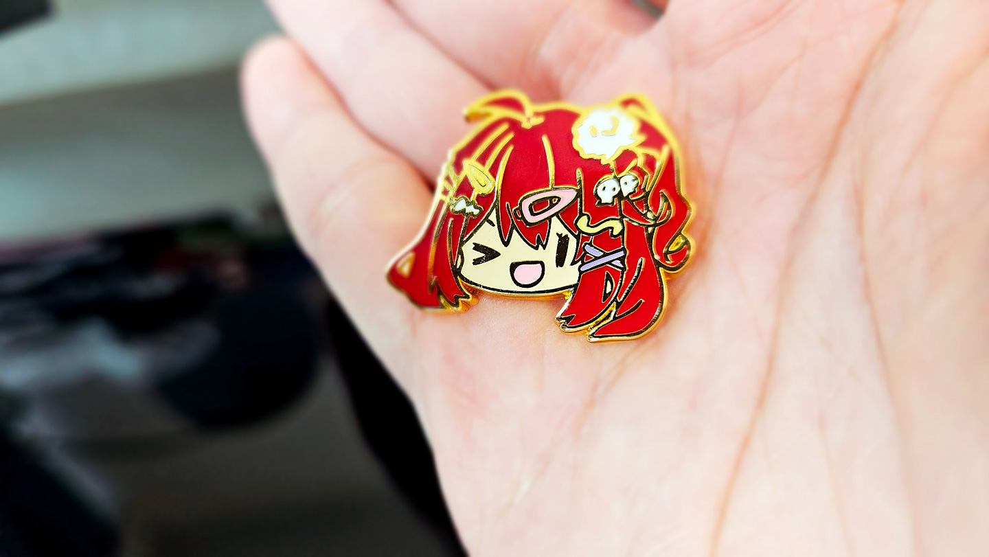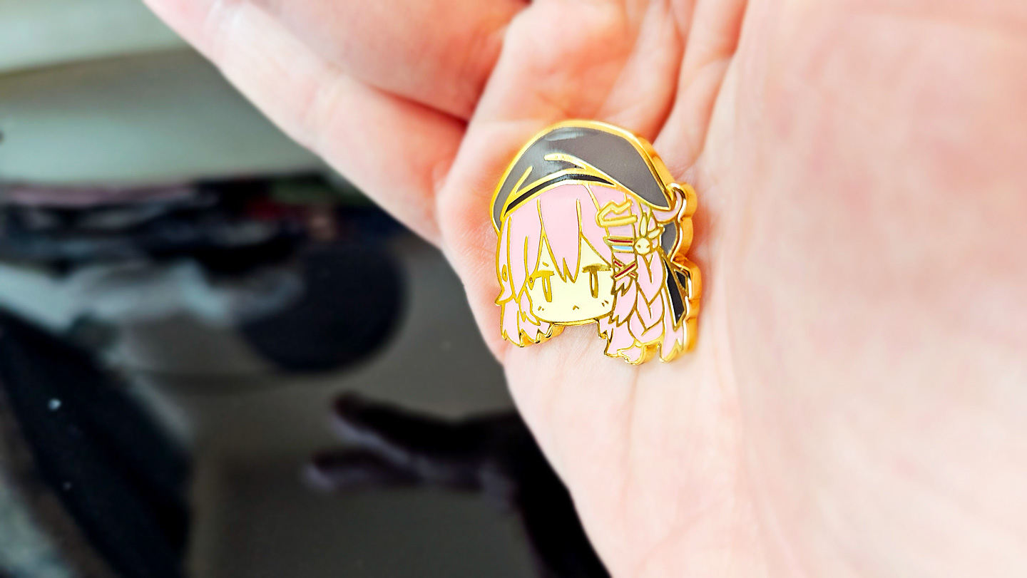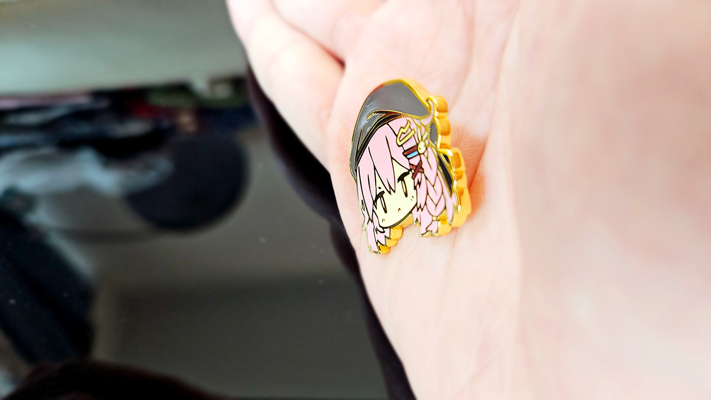 這次的金屬徽章比之前的更漂亮,仿琺瑯的金屬徽章在燈光折射下顏色會更平均,所以圖案看起來會更光滑喔!!